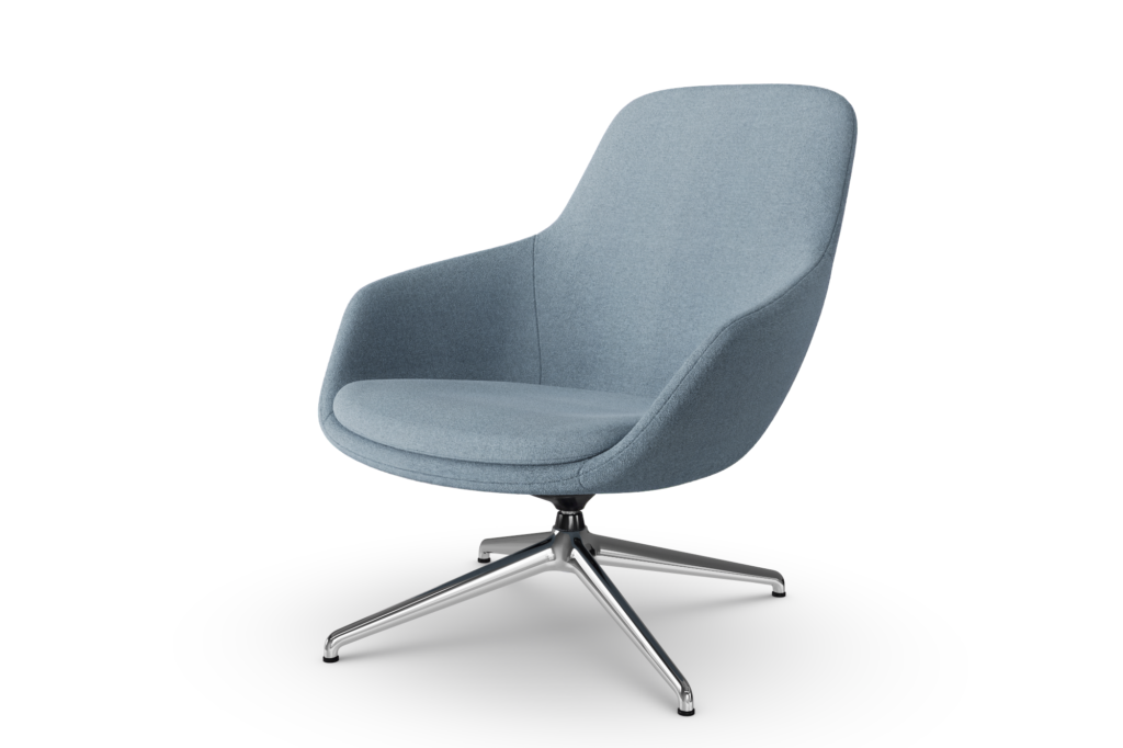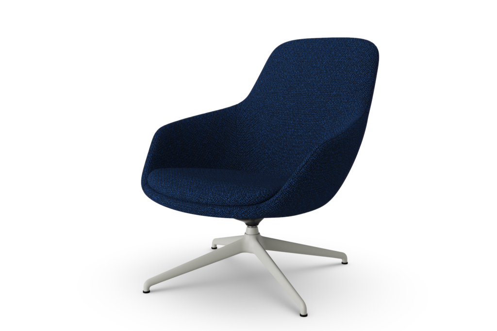 Glove Lounge är helklädd med en stomme av formgjutet kallskum och metallram, vilket ger en unik kombination av komfort och hållbarhet. Välj mellan stativ i aluminium eller träben för att anpassa stolen efter din miljö. Stolen erbjuds också med snurrfunktion och autoretur, vilket ger extra flexibilitet och funktionalitet.